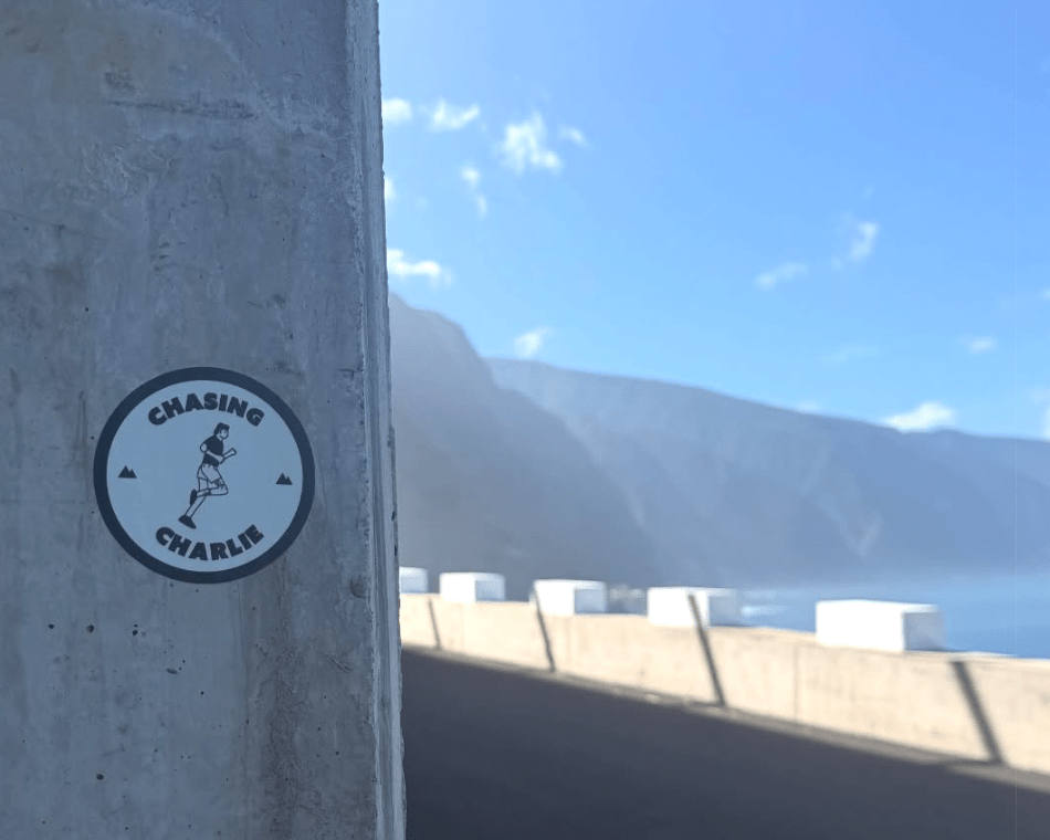 Charlie’s using the logos as stickers on his travels around the world, marking his trail and helping to promote his upcoming documentary about his 24-hour run.